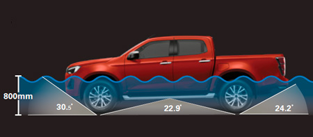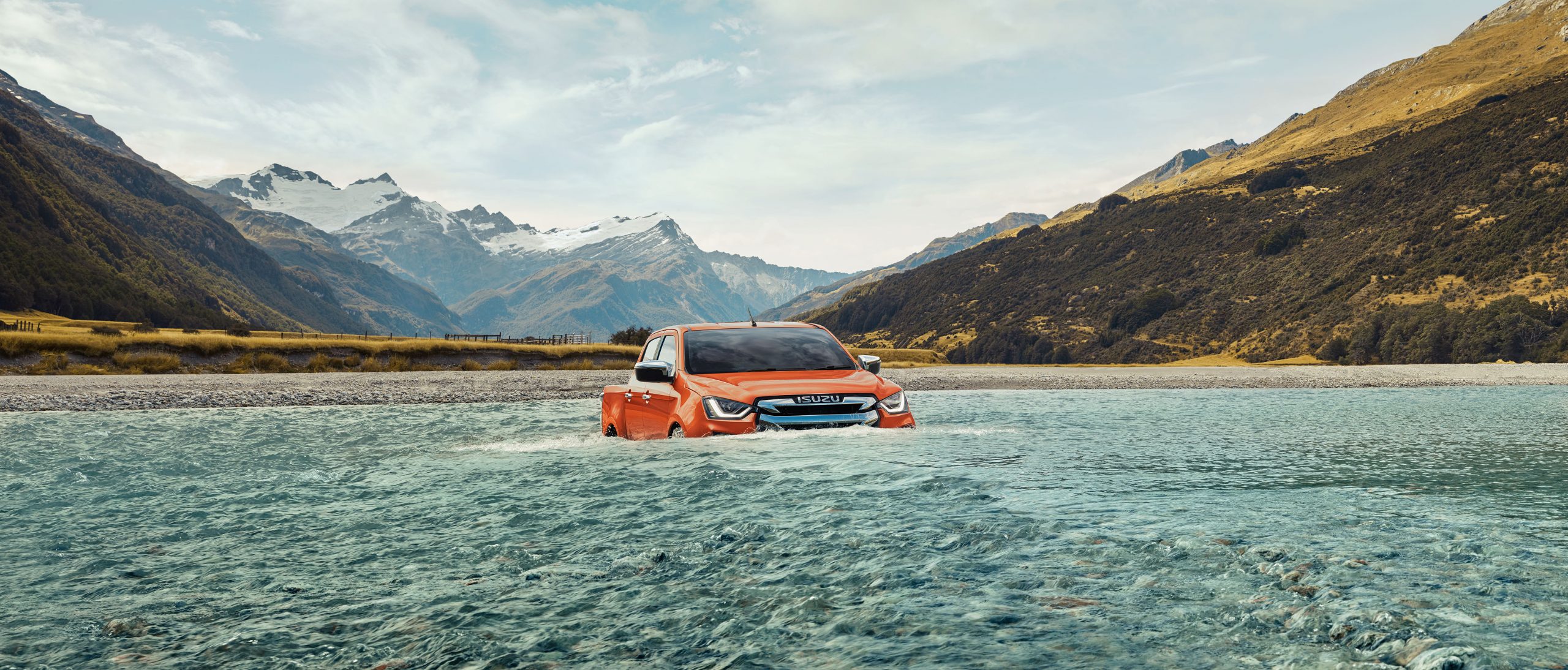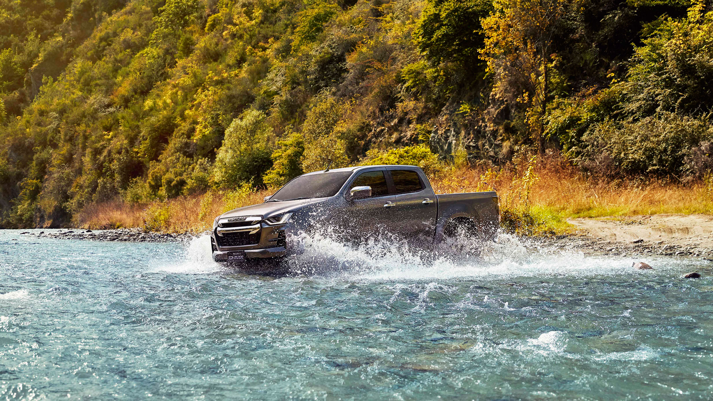 D-Max viib su usaldusväärselt kohale: liivas, mudas ja kasvõi kuni 800 mm sügavuses vees – ilma täiendava lisavarustuseta. Lülitatava nelikveo ja lukustatava tagadiferentsiaali* abil võid ületada igasuguse maastiku ja jõuda sihtkohta usaldusväärselt ja turvaliselt ka siis, kui vead enam kui 1000 kg raskust koormat.
